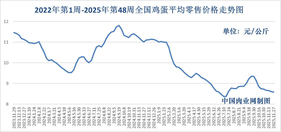 2025年12月10日全国猪肉牛肉羊肉鸡肉鸡蛋批发价格日报及走势分析
